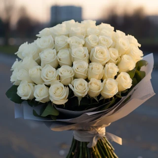 Букет "Эмили" – это чистота и нежность, объединенные в 75 белых роз. В каждом цветке затаилась история надежды и беззаботности. Их лепестки словно переливаются белоснежным мерцанием, создавая впечатление, что воздух наполнен благостными эманациями зари. Эти розы – источник радости и исполнения добрых желаний. Подарите этот букет близкому человеку и пусть его сердце наполняется чистотой и миром. Букет "Эмили" – символ безграничной красоты и доверия.